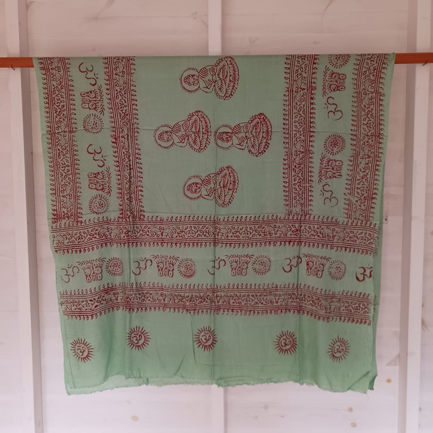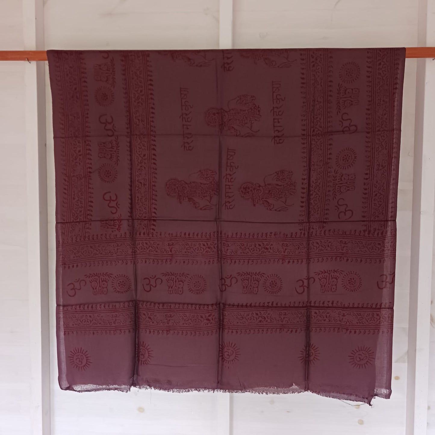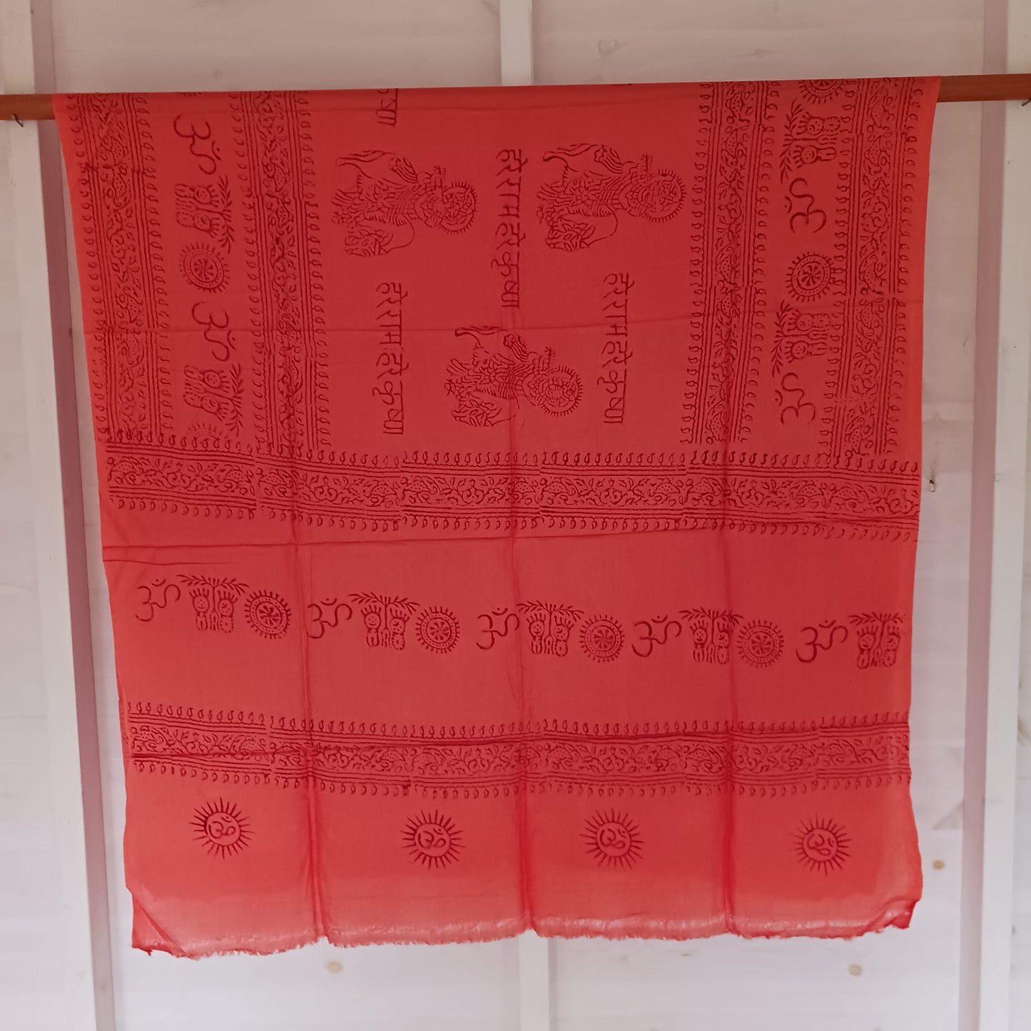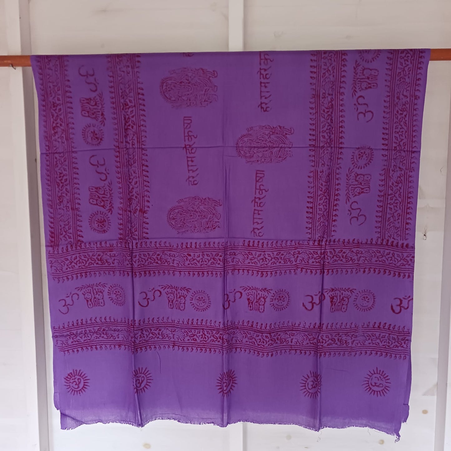 OM, Hare Ram Hare Krishna, OM Namha Shivaya, Buddha printed cotton prayer shawls. These shawls are available in assorted print and in assorted colour as shown on the picture . Since the product is handmade; there can be slight variation in given measurement.
