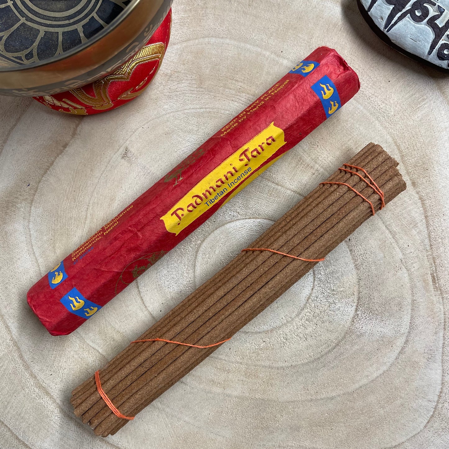 Padmani Tara Tibetan Incense is produced by following the guidance of Vajrayana gurus and masters.This incense helps open blocks in the body’s energy system purifying fire element and rejuvenate the body,maintaining health and well being.This incense is composed of several types aromatic wood and Ayurvedic herbs and spices. Using ancient wisdom and the finest ingredients, Padmani Tara Tibetan Incense can help create a deep sense of balanced harmony for a healthier, happier you.