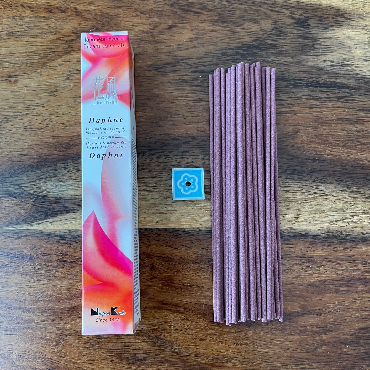 Ka-Fuh Daphne incense is a floral scented incense produced by Nippon Kodo. The Ka-Fuh brand takes inspiration from the beautiful aroma that flowers give off in the breeze after a light rain shower and the name literally translates to, “the scent of blossoms in the wind.”