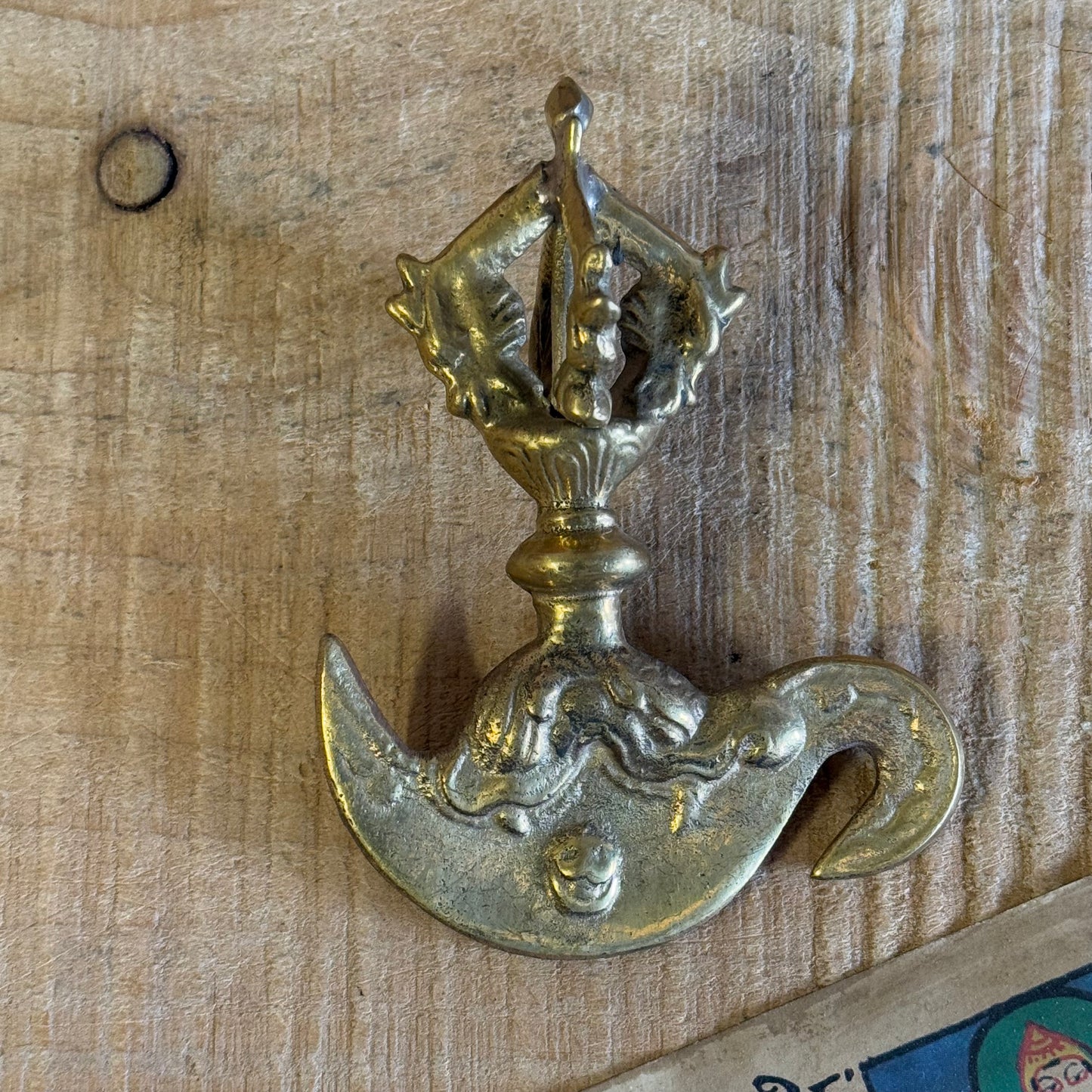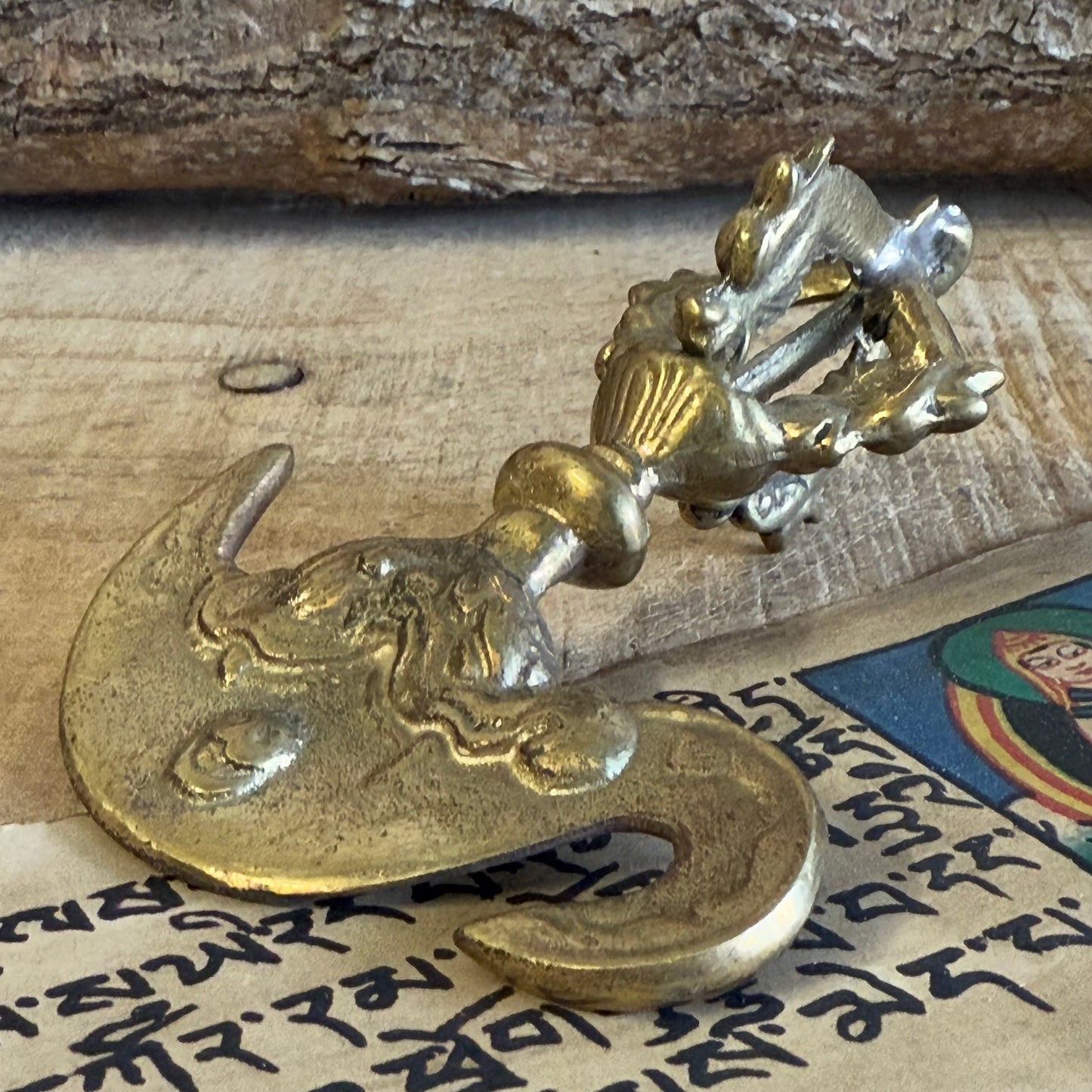 This beautifully handcrafted Kartika is made of solid brass, carefully crafted in Nepal by skilled artisans, embodying centuries-old techniques. Weighing 132 grams, it is both a powerful symbol and an exquisite piece of spiritual art. Perfect for altar displays, meditation rituals, or as a unique gift for those on a spiritual journey.