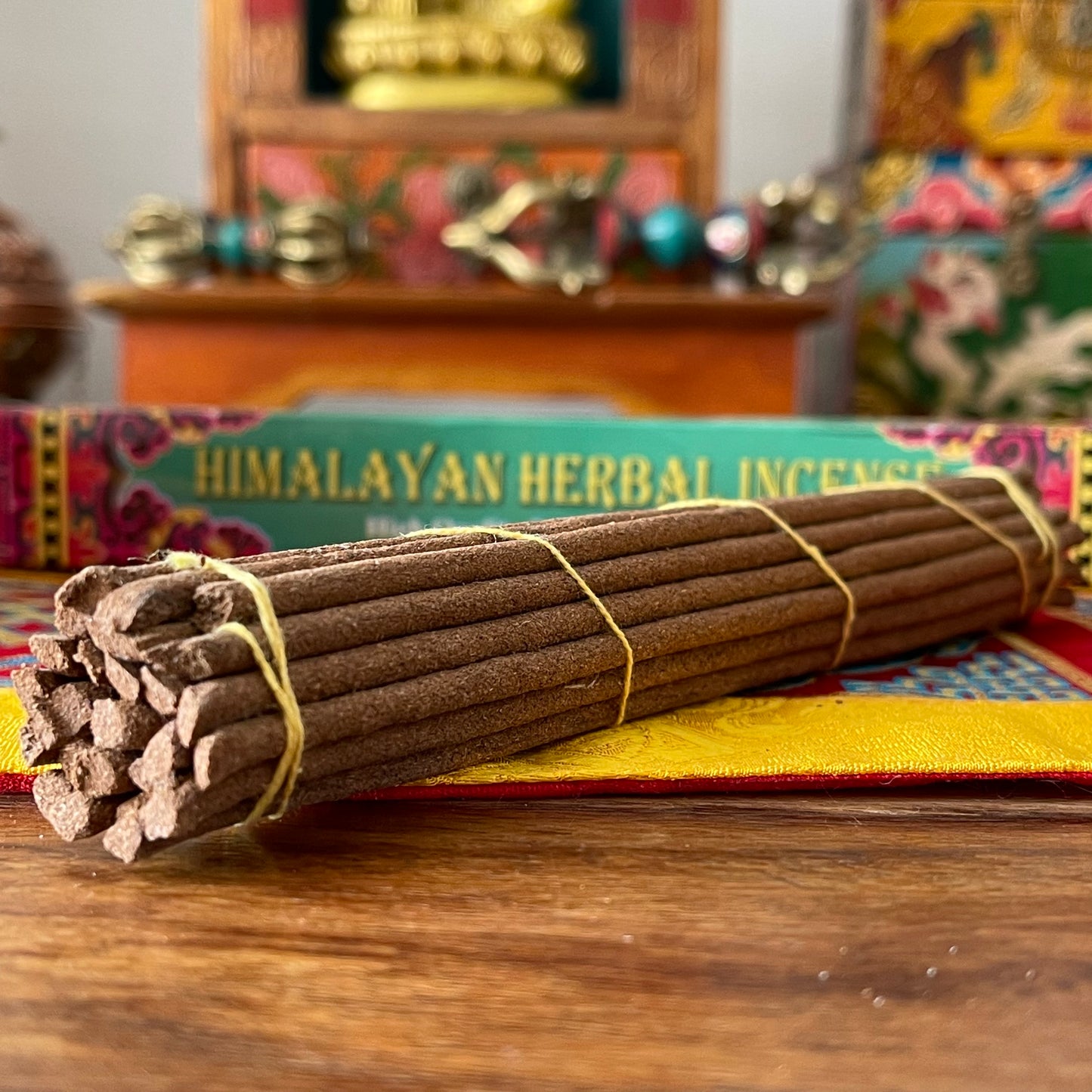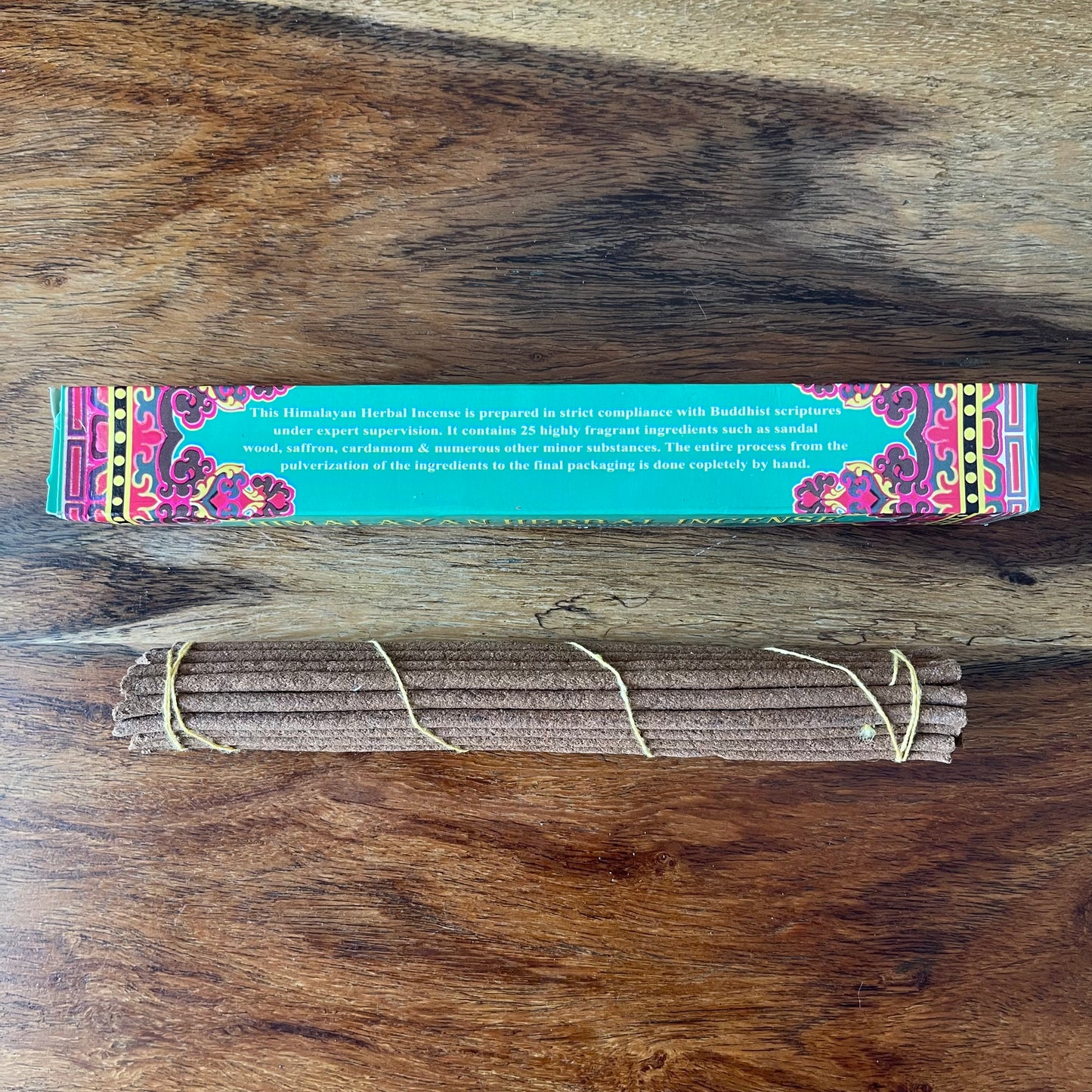 This Himalayan Herbal Incense is prepared in strict compliance with Buddhist scriptures under expert supervision. It contains 25 highly fragrant ingredients such as sandalwood, saffron, cardamom & numerous other minor substances. The entire process from the pulverization of the ingredients to the final packaging is done completely by hand.