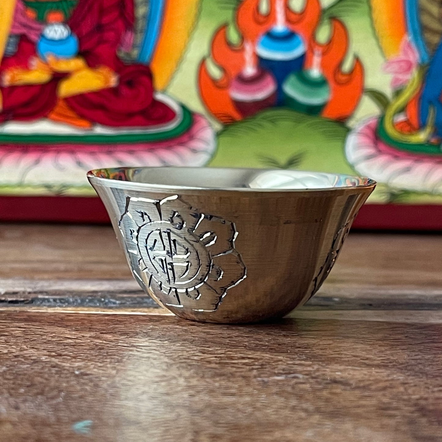 Traditionally, each bowl is filled with substances such as water, incense, perfumed oil, food, flowers, or light—expressing a pure heart and the wish to cultivate virtue. Laying out these offerings is a daily act of devotion, mindfulness, and humility.