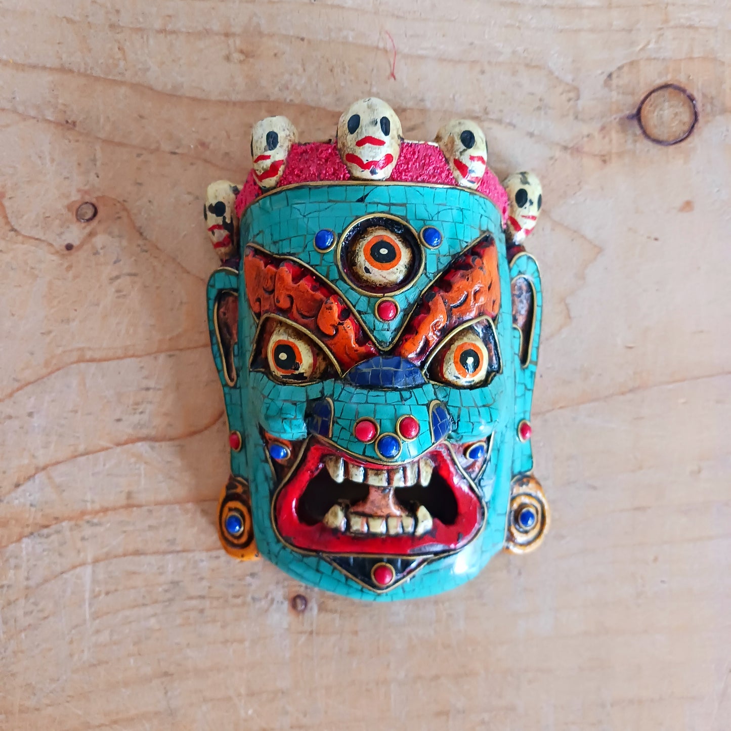 Tibetan Mahakala Mask with Stone Inlay | Small