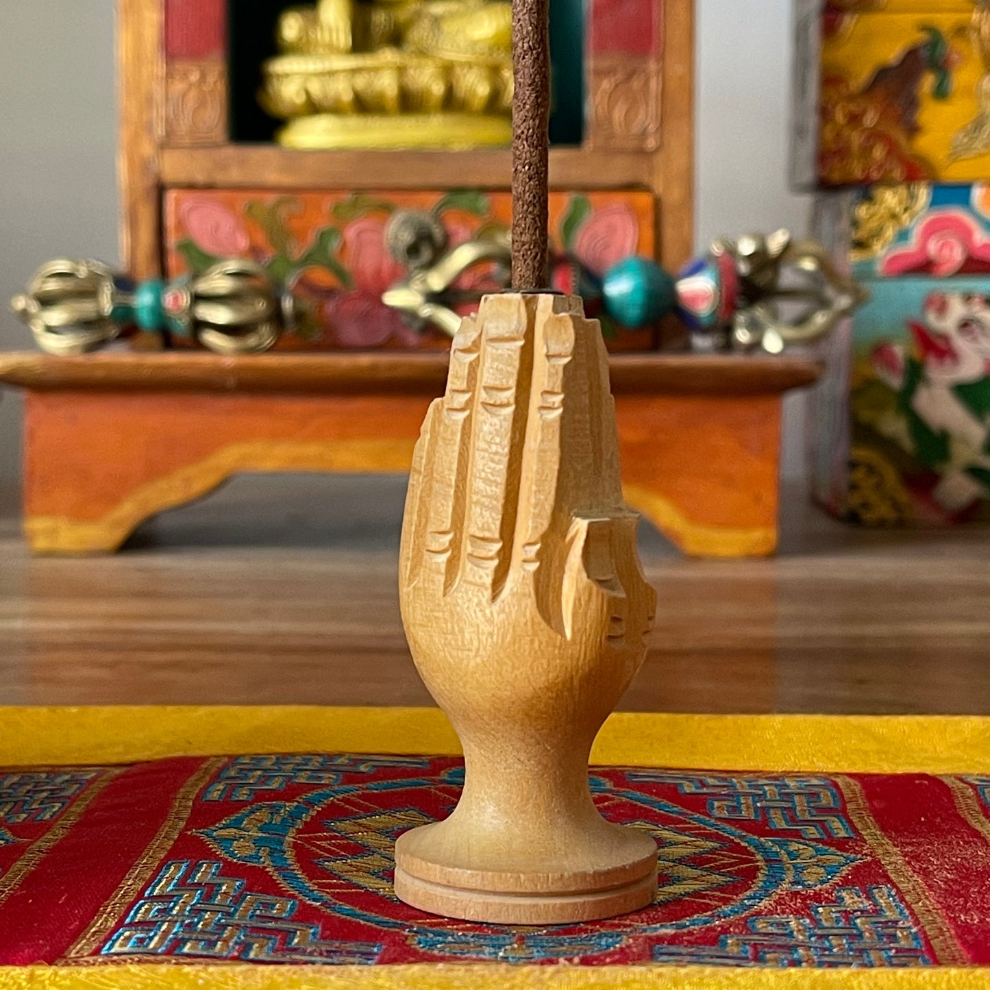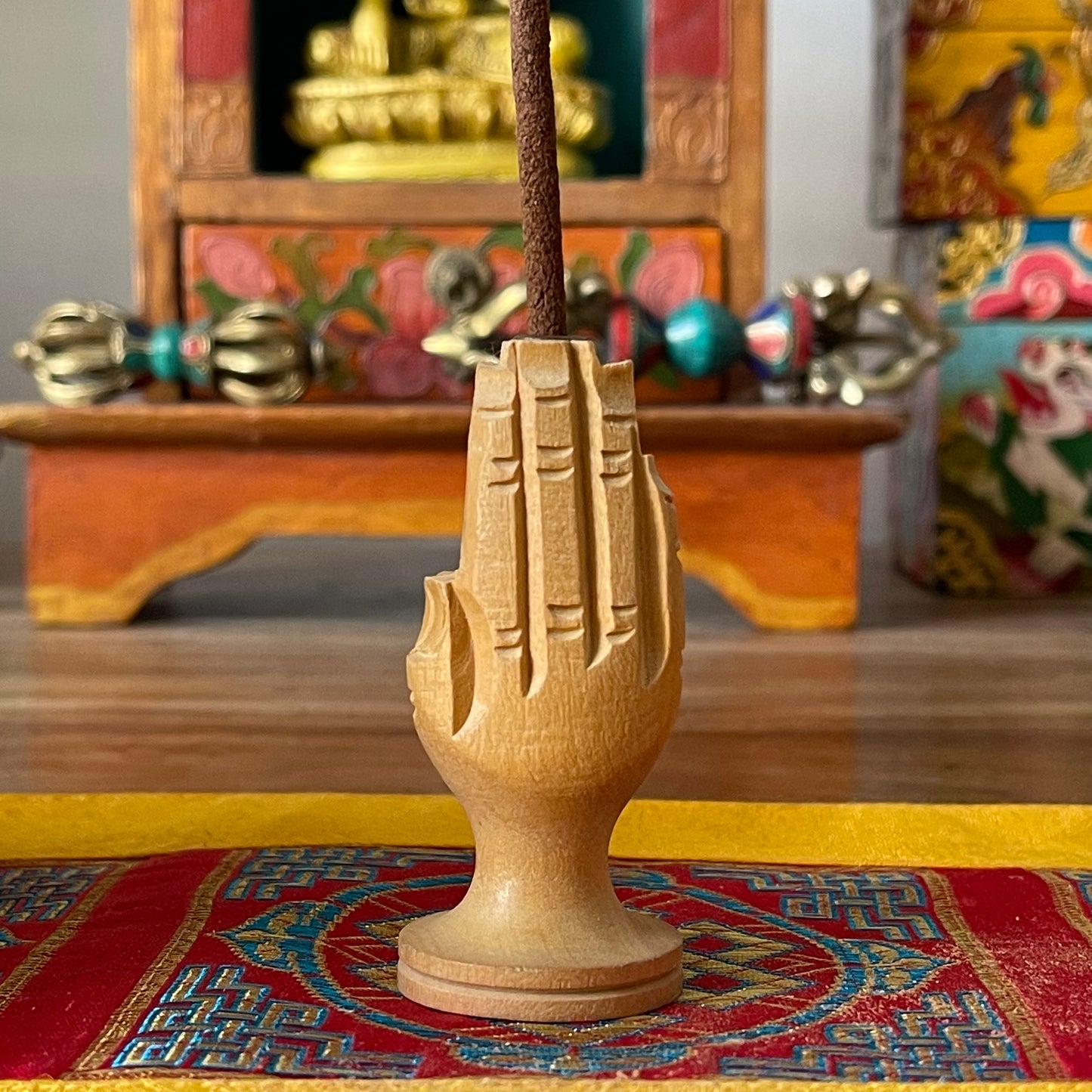 This intricately carved incense burner holds Tibetan Zimpu incense.