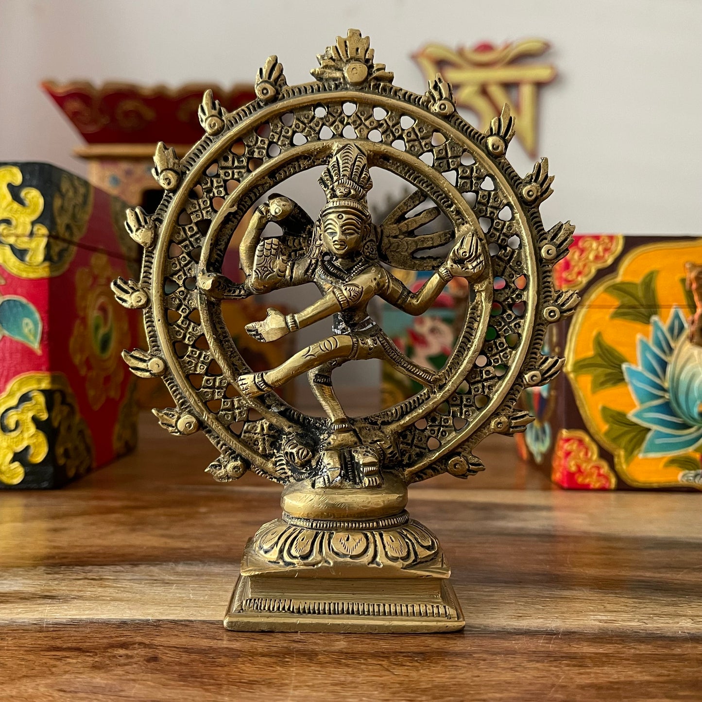 Handcrafted brass Shiva Nataraj statue, standing 15cm tall, symbolizing the cosmic dance of creation, destruction, and renewal. With damaru and agni in hand, and a gesture of humility, this sacred statue embodies spiritual balance, protection, and transformation. Ideal for meditation, altars, or as a meaningful spiritual gift.