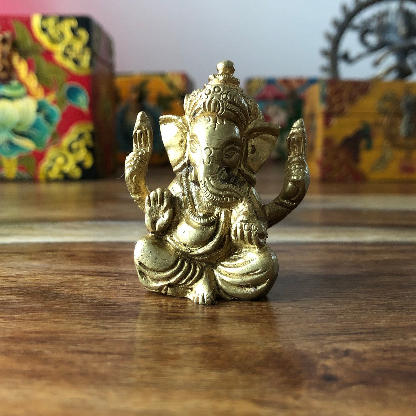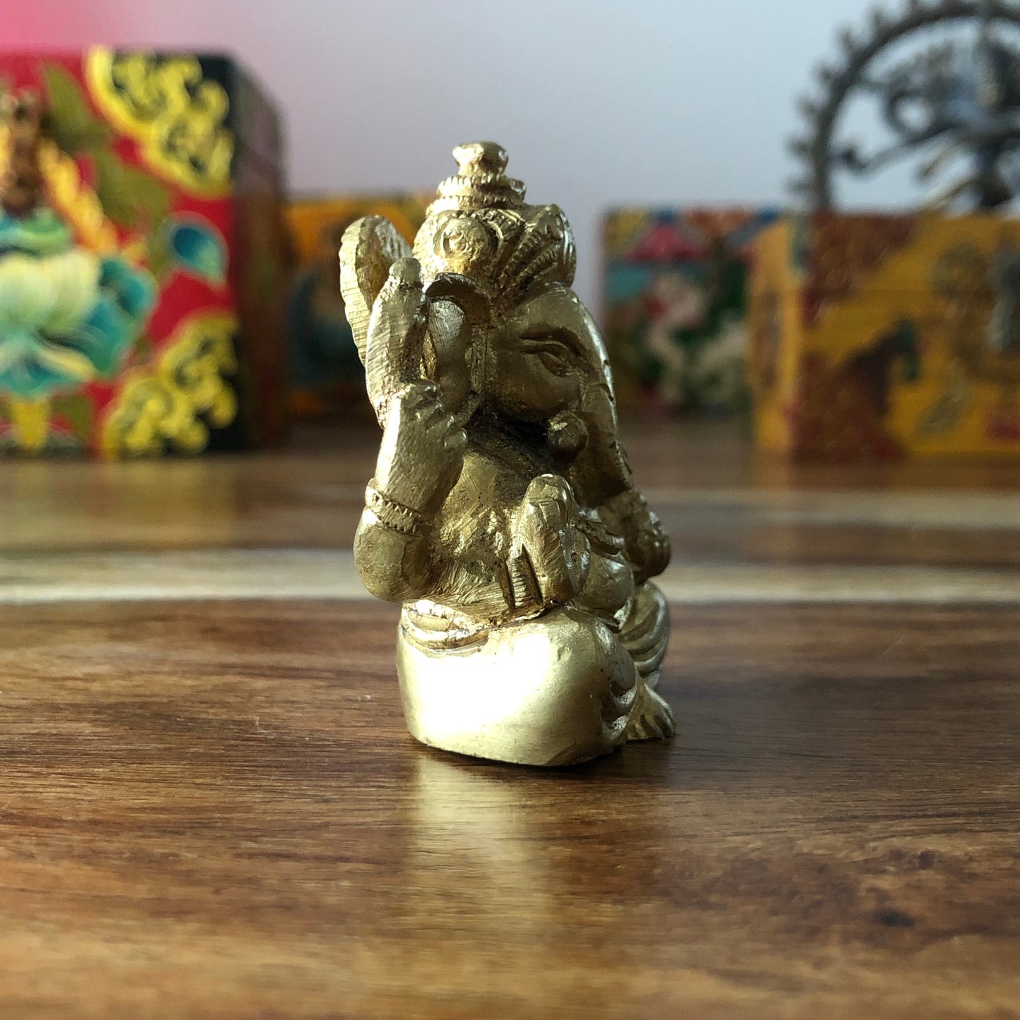 Brass Mini Ganesha Statue – Handcrafted in Nepal (6 cm)