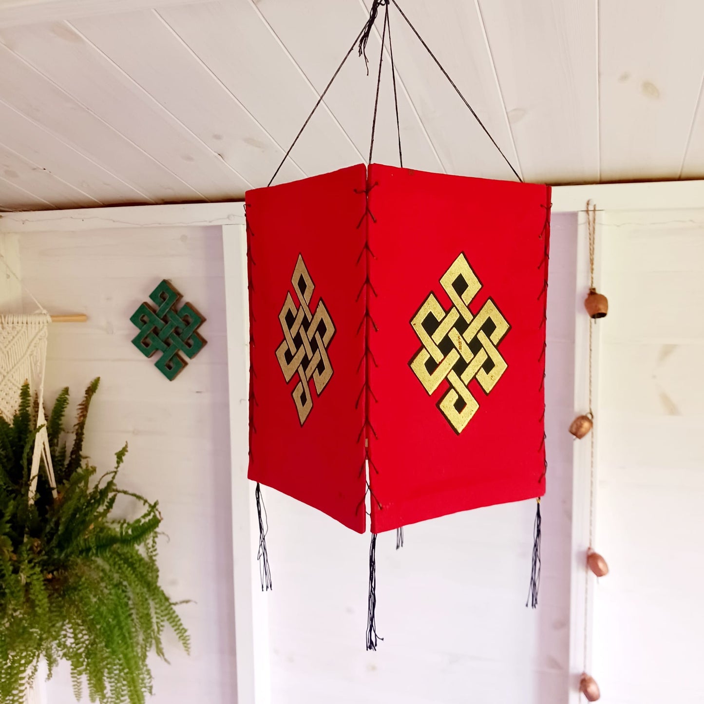Lokta Paper Nepalese Lampshade Endless Knot | Red