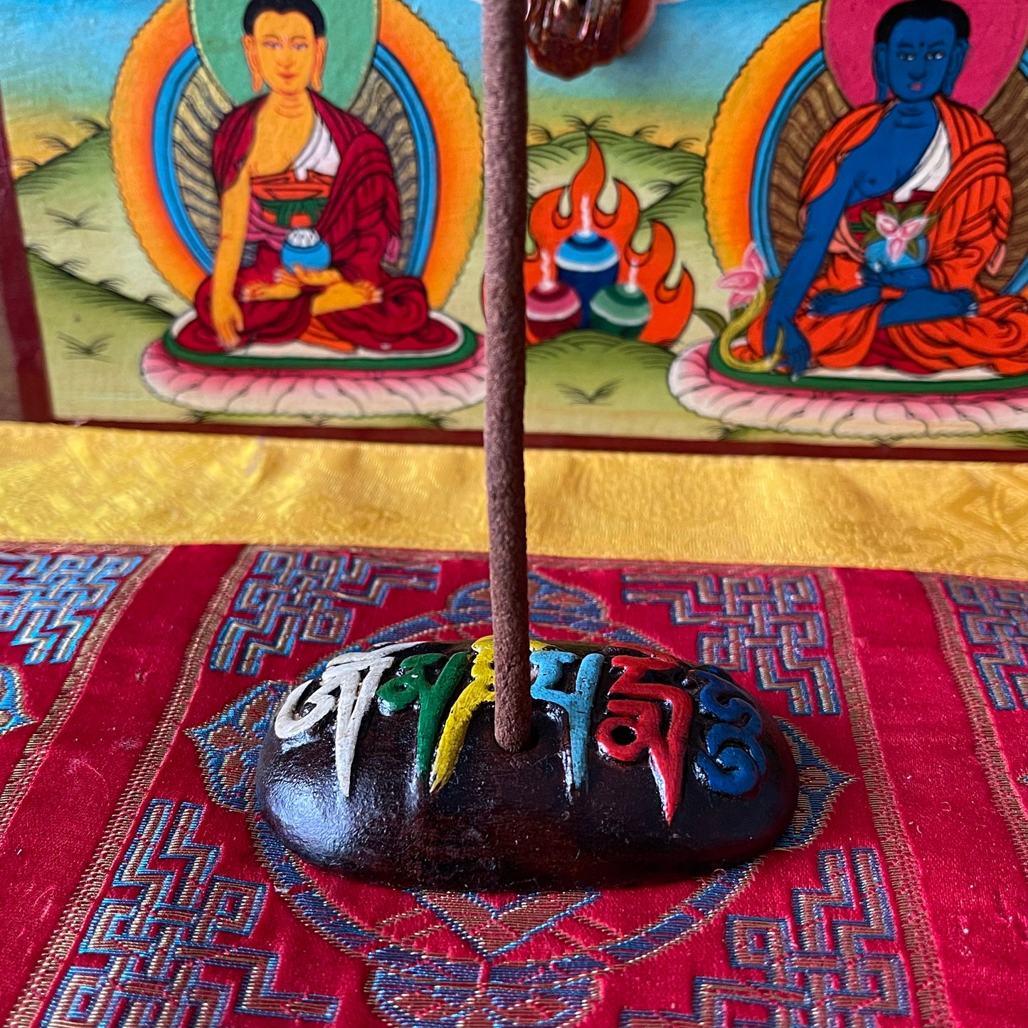 Om Mani Clay Incense Holder