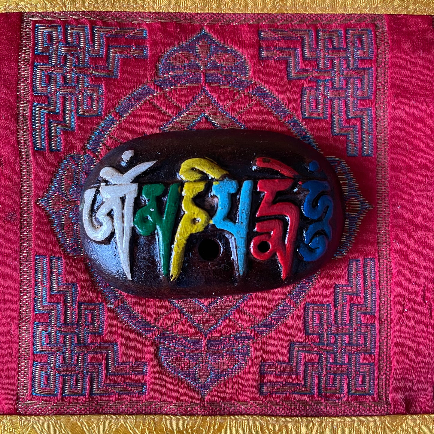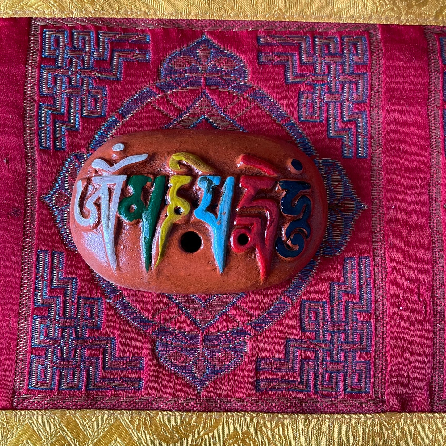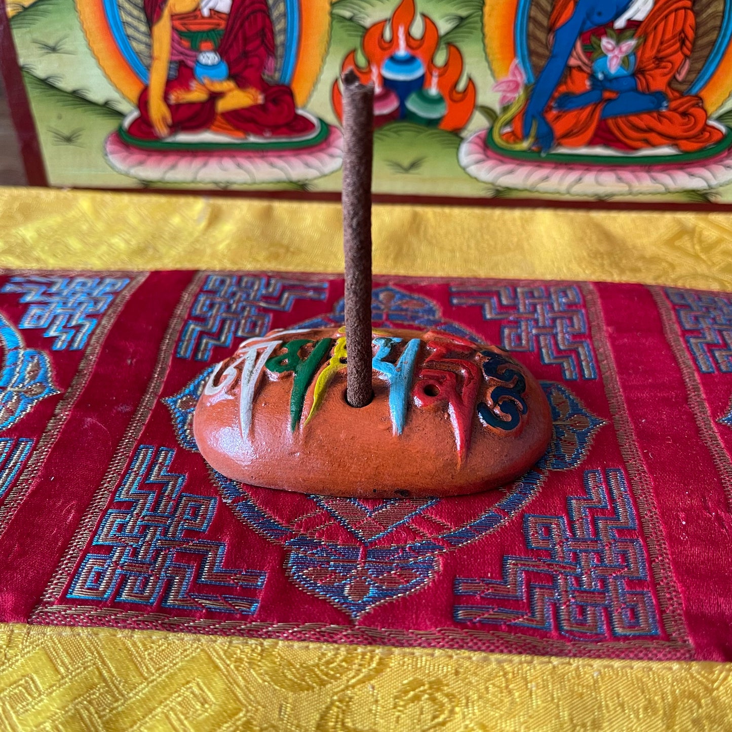 Om Mani Clay Incense Holder Small Hand painted clay Incense holder