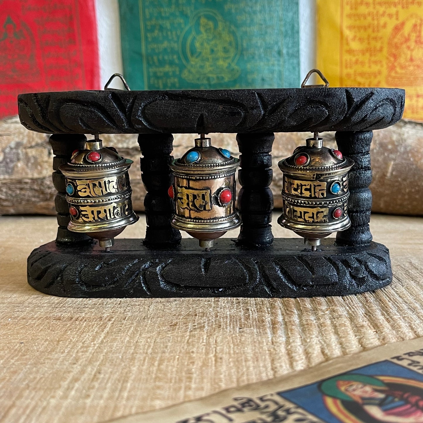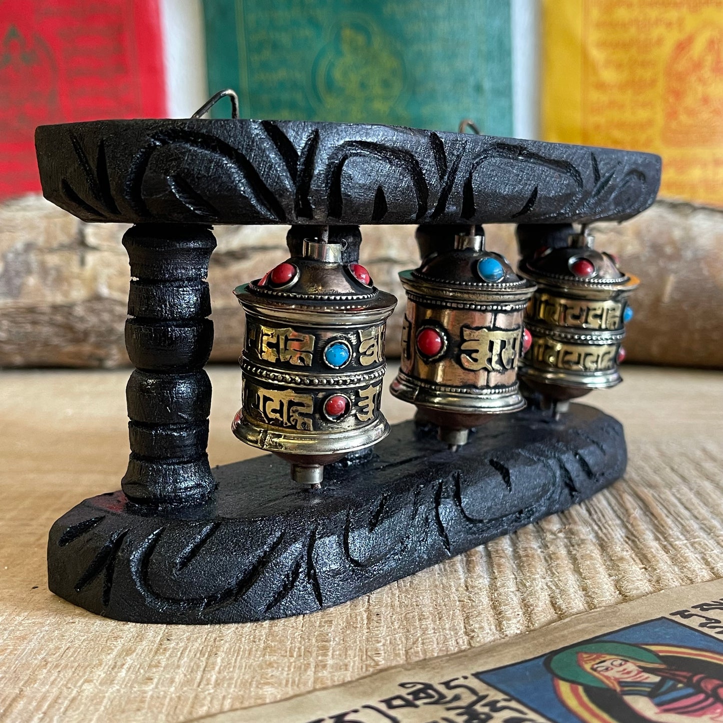 Wall Mounted Triple Prayer Wheel | Handcrafted Copper Mantra Set